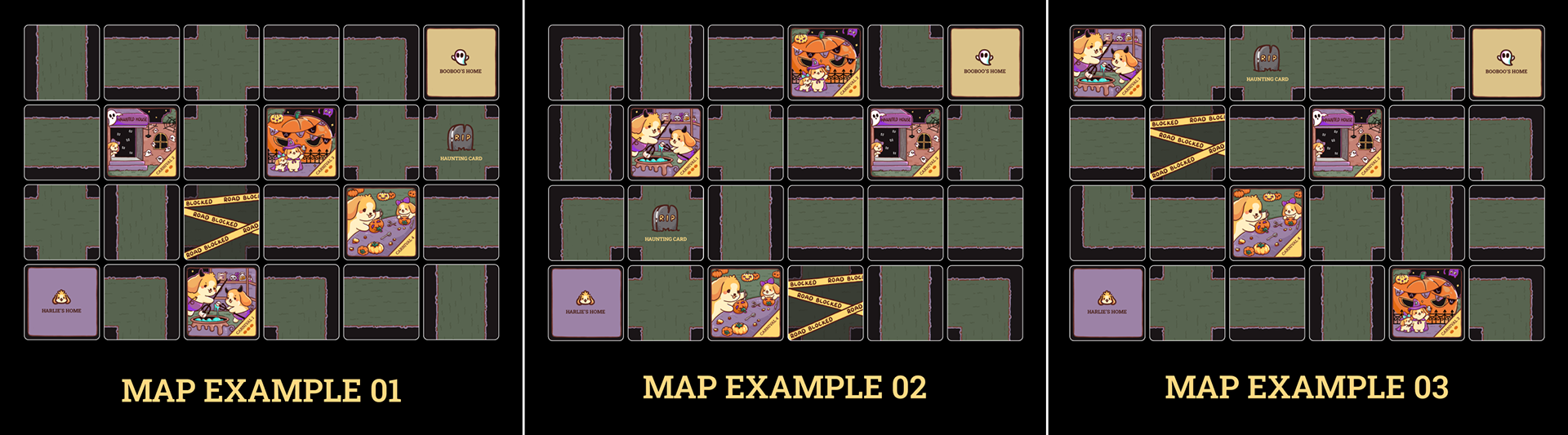 Pumpkin Rally's replay value shines with its randomized game map. Each game starts with a unique layout by shuffling the map cards, presenting new challenges and strategic opportunities every time you play. Each session offers a fresh and exciting experience!
